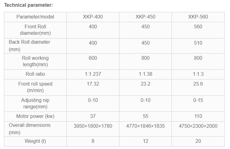 2.The roll face is hard and anti-wear. Both the front roll and the back roll are fluted. The internal cavity of the roll is processed to ensure temperature well proportioned on the roll surface.