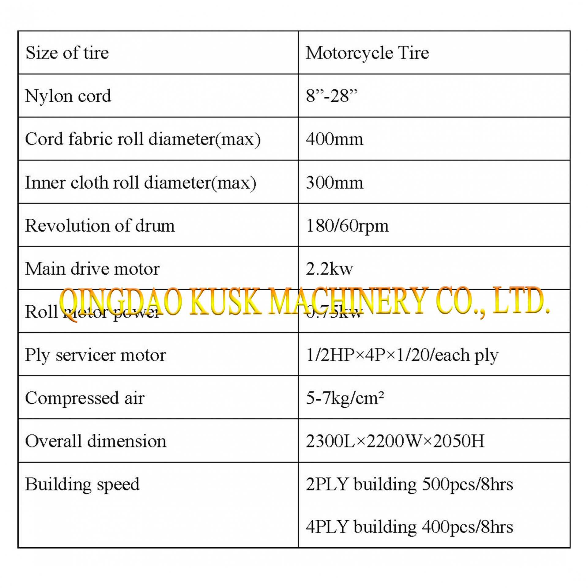 The building machine is used for produce motorcycle tire and motorcycle tubeless green tire building.Integration of PLY applying,bead applying & cord turn-up,high degree of automation,good quality green tire building,easy and simple operation,it is advanced tire building machine equipment